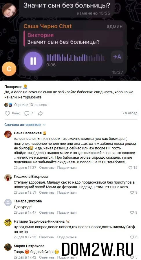 Несмотря на критику со стороны подписчиков, Черно старается сохранять позитивный настрой. Она уверяет, что после новогодних праздников обязательно займётся вопросами здоровья сына и отвезёт его в больницу. Однако пользователи соцсетей всё чаще сомневаются в серьёзности её намерений, предполагая, что приоритеты блогера вновь могут сместиться в сторону личных дел и развлечений.